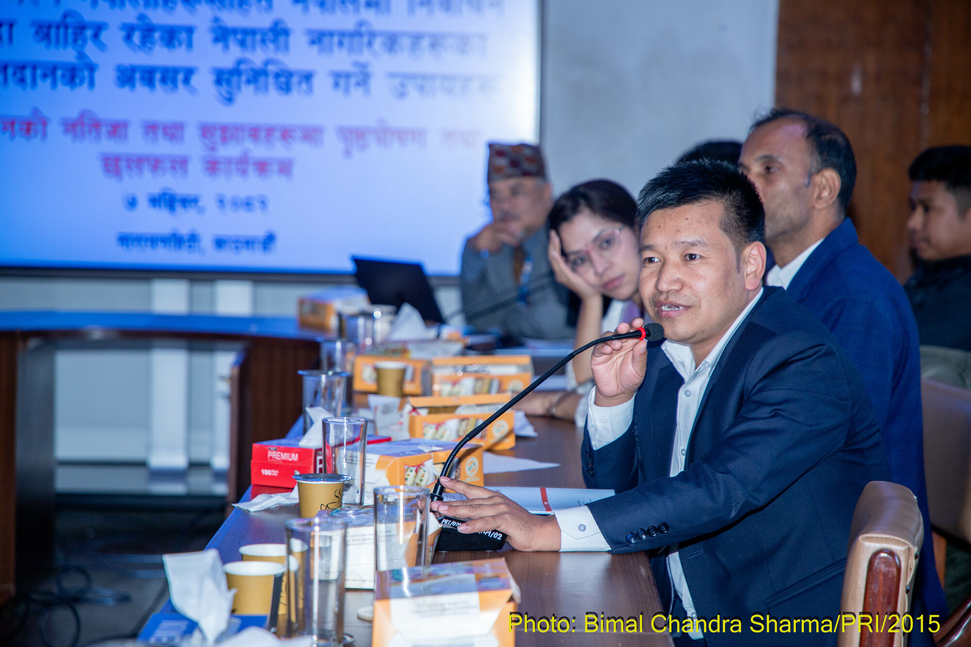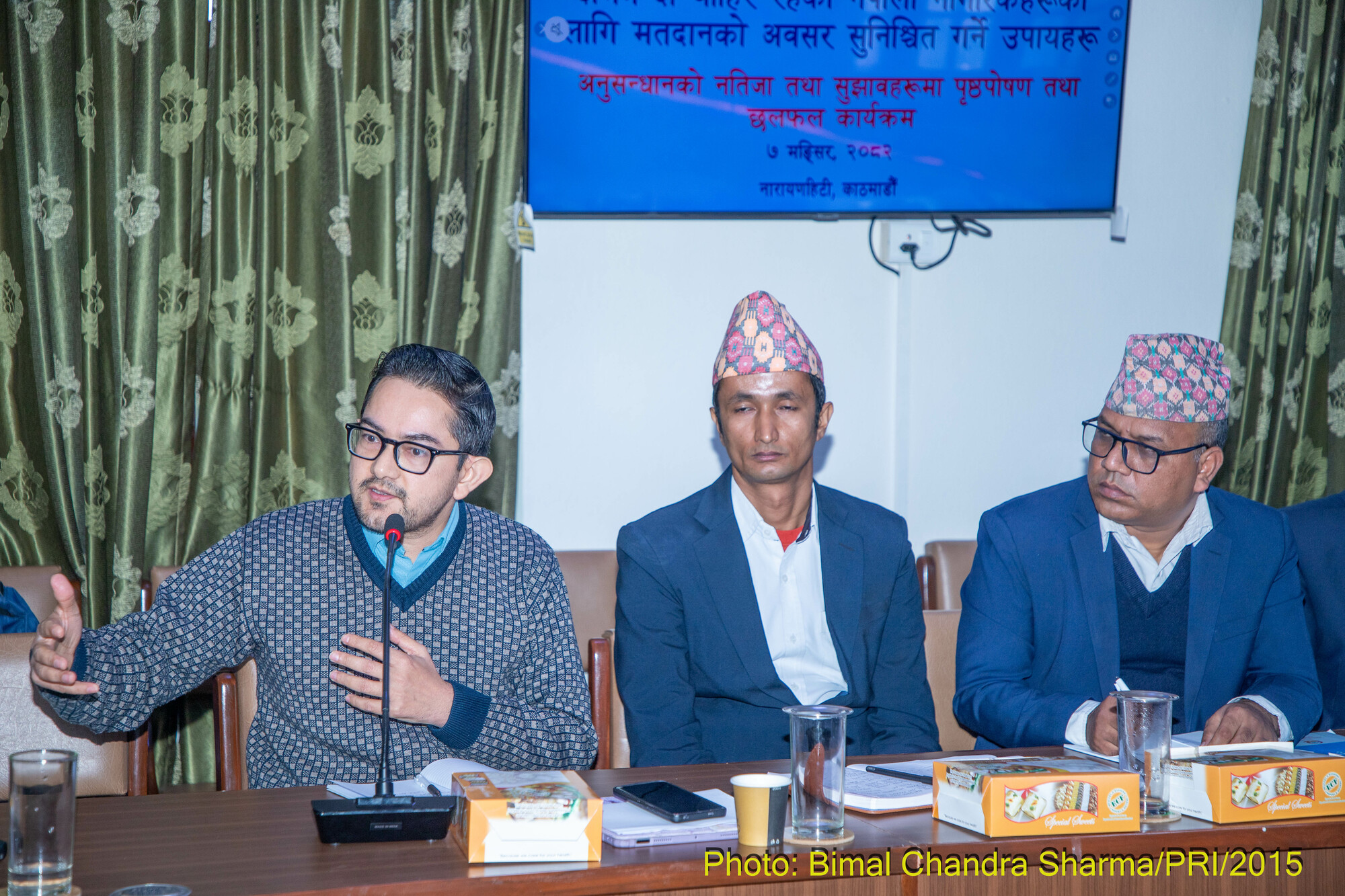 “विदेशमा रहेका तथा नेपालमै निर्वाचन क्षेत्र बाहिर रहेका नेपाली नागरिकहरूलाई मतदानमा सहभागी गराउने उपायहरू” विषयक सार्वजनिक नीति संवाद सम्पन्न