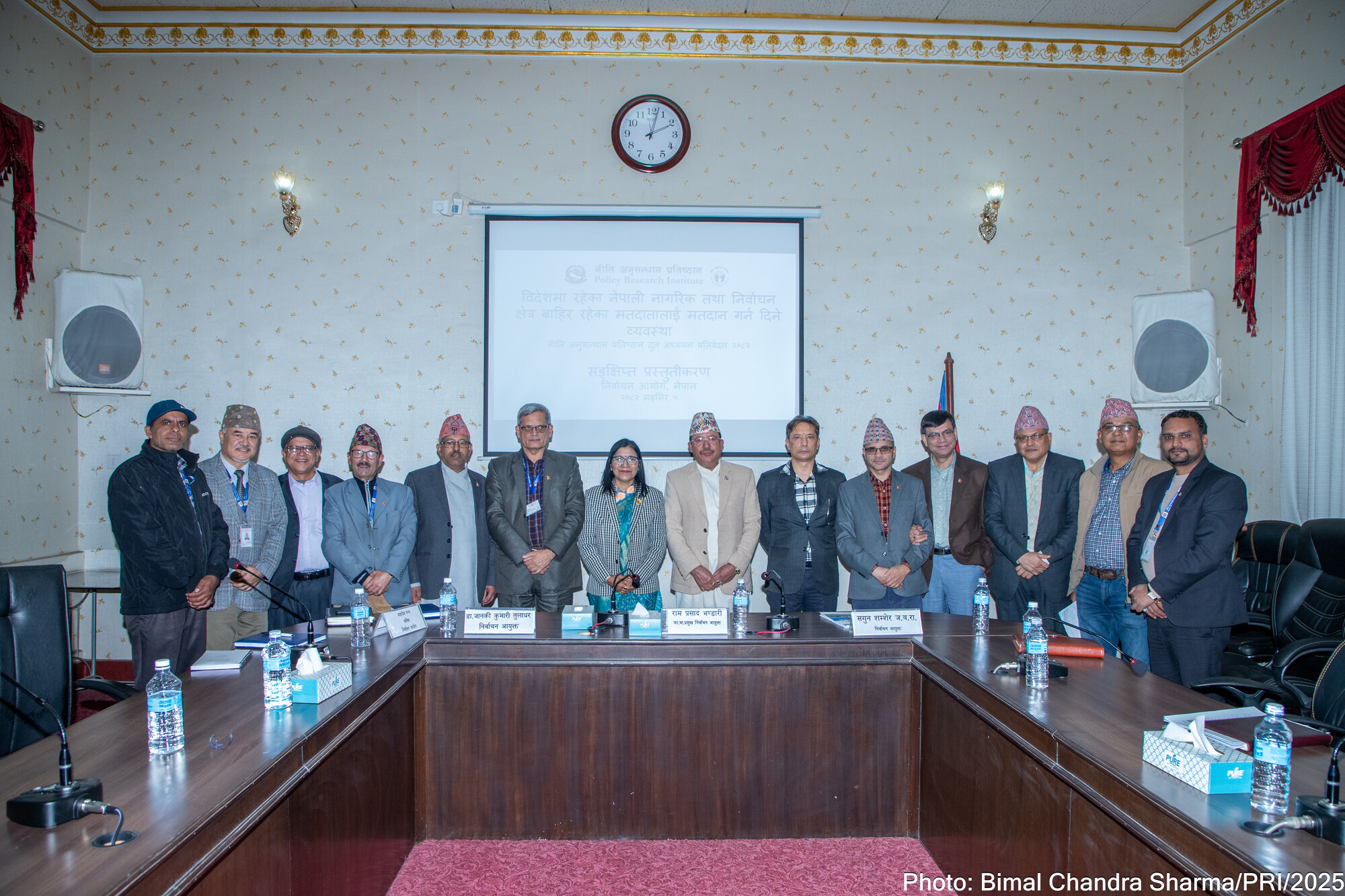 विदेशमा रहेका नेपाली नागरिक तथा निर्वाचन क्षेत्र बाहिर रहेका मतदातालाई मतदान गर्न दिने व्यवस्था सम्बन्धमा नीति अनुसन्धान प्रतिष्ठानले सम्पन्न गरेको अध्ययनको निष्कर्ष प्रस्तुति तथा छलफल